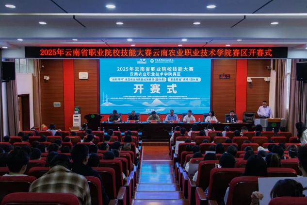 开赛式现场,来自主办单位、协办单位、承办院校的领导嘉宾及参赛师生齐聚一堂。云南农业职业技术学院相关负责人在致辞中表示,职业院校技能大赛是检验职业教育教学成果、推动产教融合的重要平台,学校将以高标准、严要求保障赛事公平公正开展,为参赛选手营造良好竞技环境,同时希望选手们以赛促学、以赛促练,在竞技中锤炼技能、收获成长。