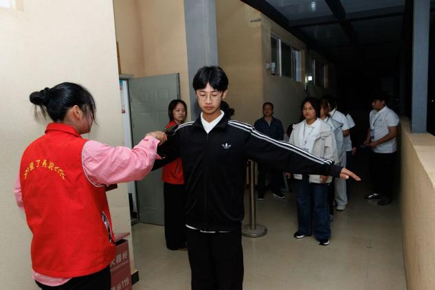 夜幕下,选手经严格安检进入理论考场,专注作答专业试题,监考与安检环节确保比赛公平公正,考验选手知识积淀。