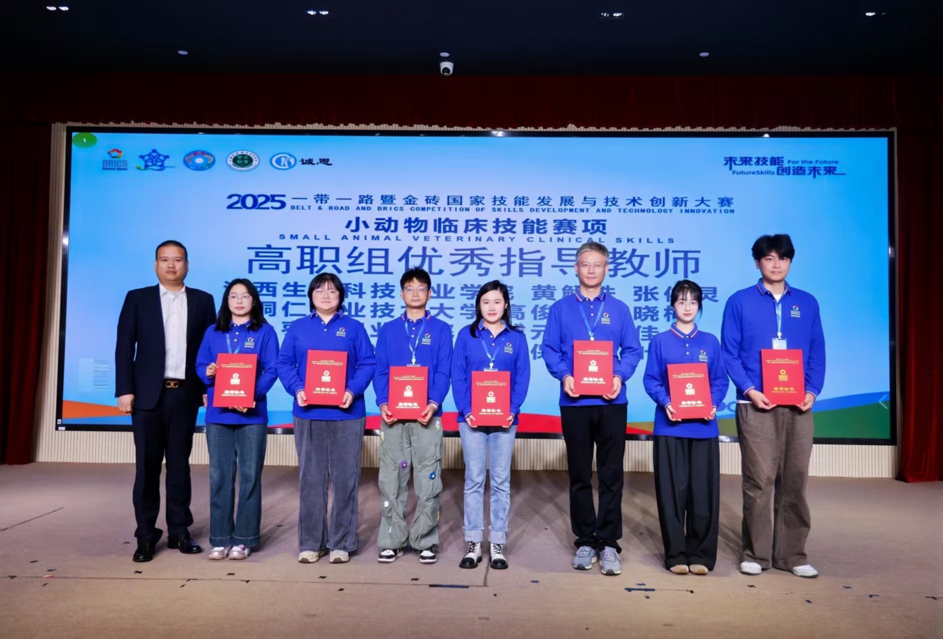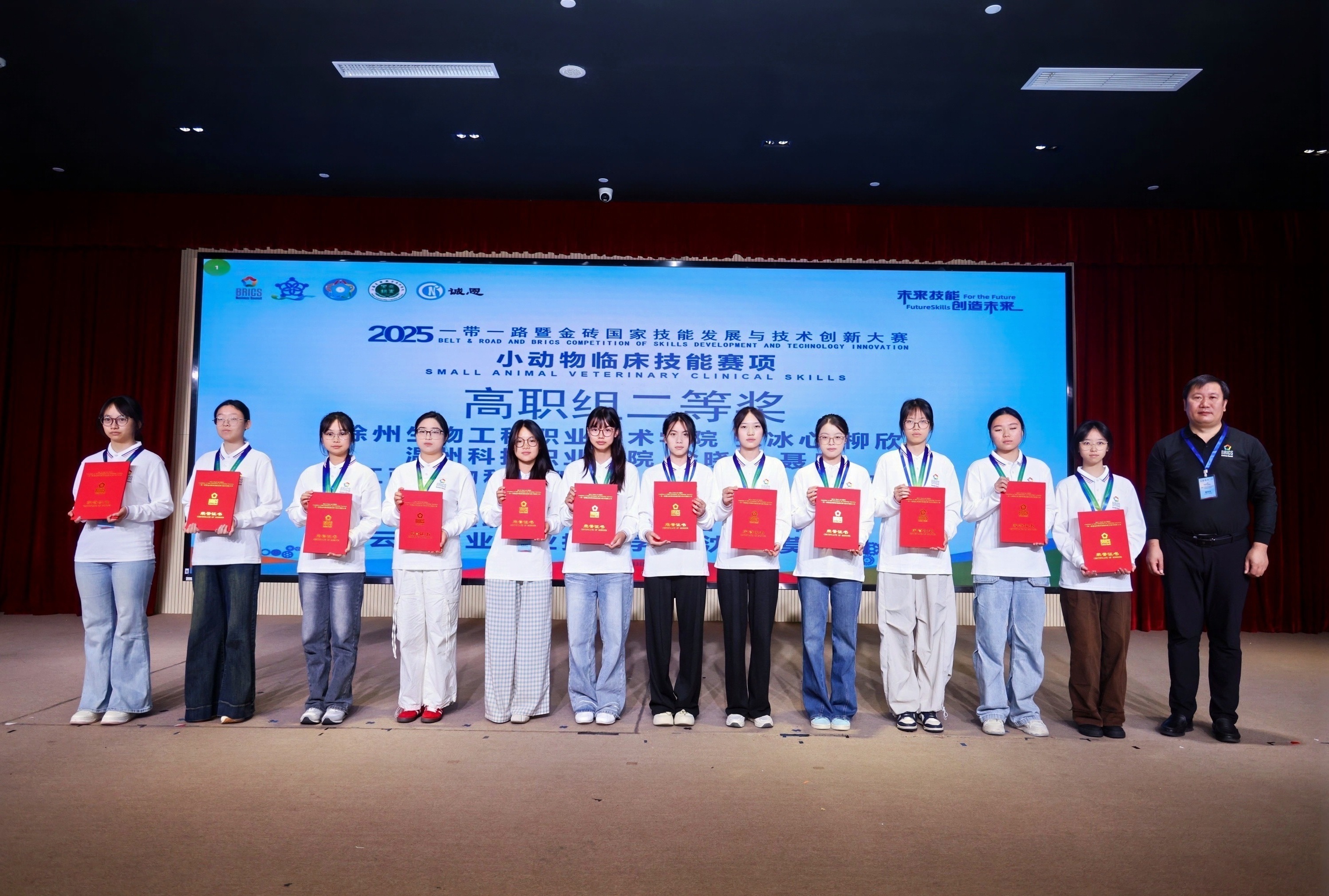 通知中心11月1日至3日期间,2025 “一带一路” 暨金砖国家技能发展与技术创新大赛小动物临床技能赛项高职组比赛在上海农林职业技术学院落下帷幕。我学院2024 级宠物医疗技术一班学生沈颖、莫欣圆凭借扎实的专业技能和出色的临场发挥,从全国 40 余支参赛队伍中脱颖而出,荣获高职组二等奖。指导教师叶妍琳、保志鹏获评 “优秀指导老师”。