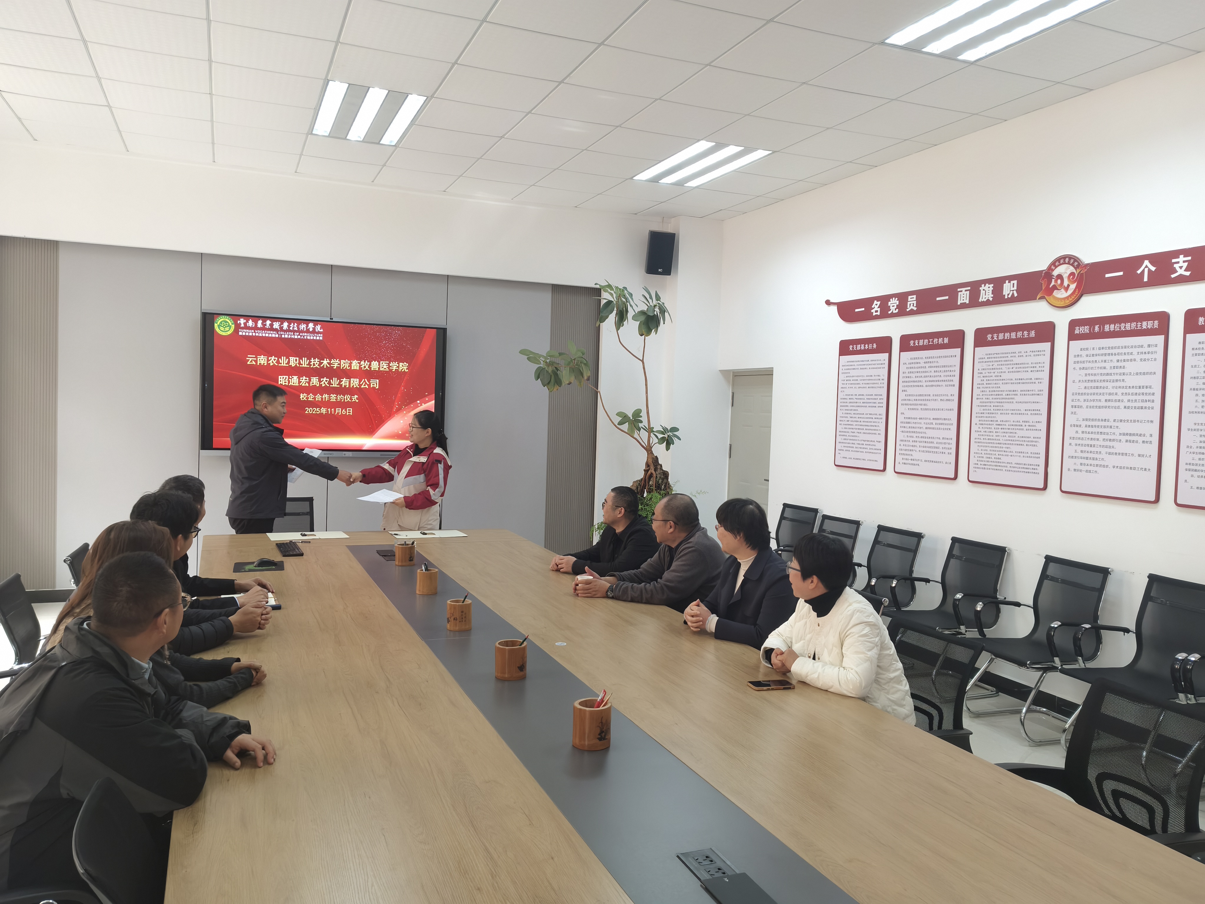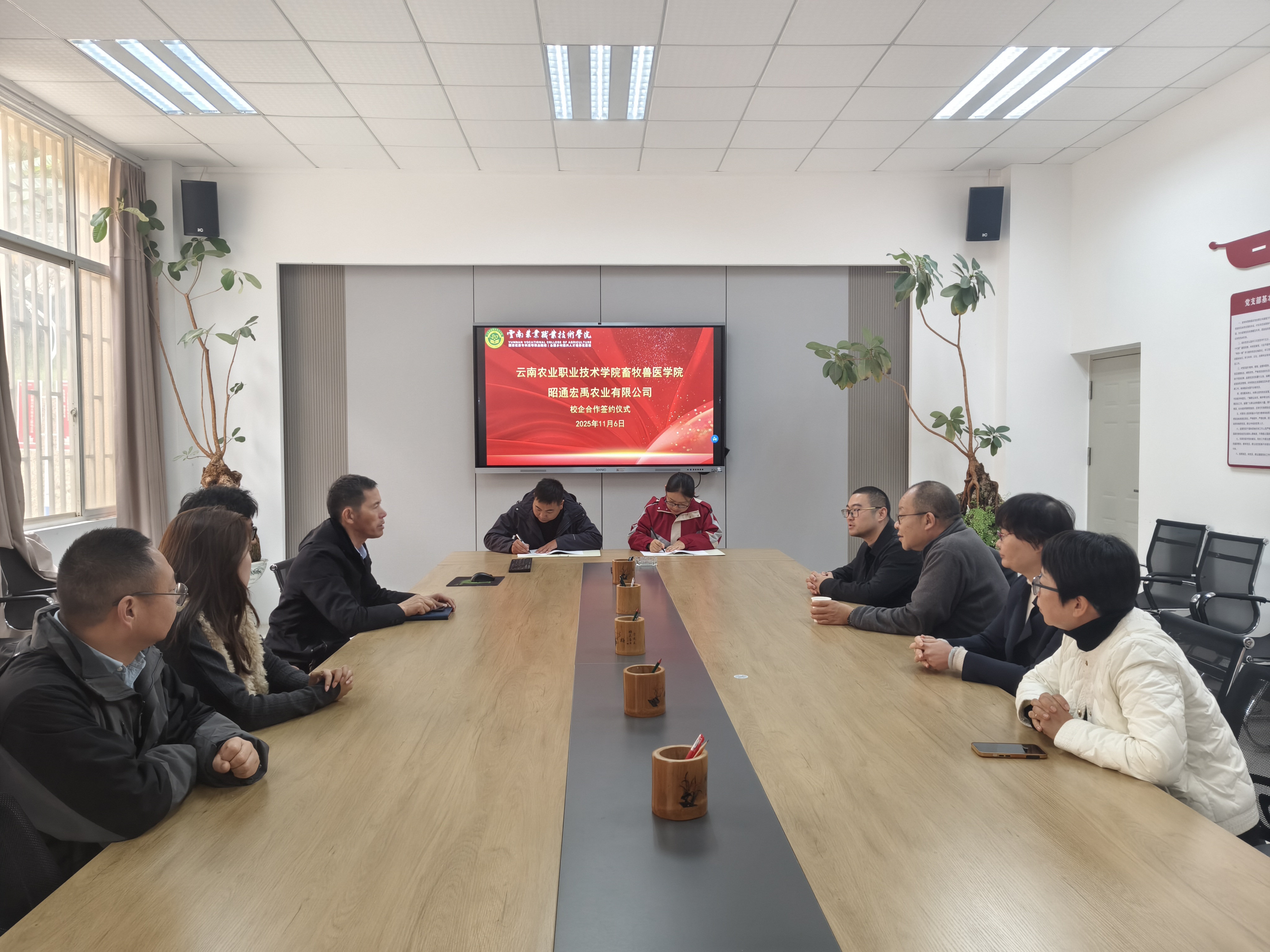 校企合作11月6日,近日,云南农业职业技术学院畜牧兽医学院与昭通宏禹农业有限公司校企合作签约仪式,在学院实训楼会议室举行。学院分管领导、畜牧兽医学院负责人、专业教师代表及企业总经理一行出席,标志着双方产教融合合作正式启动。