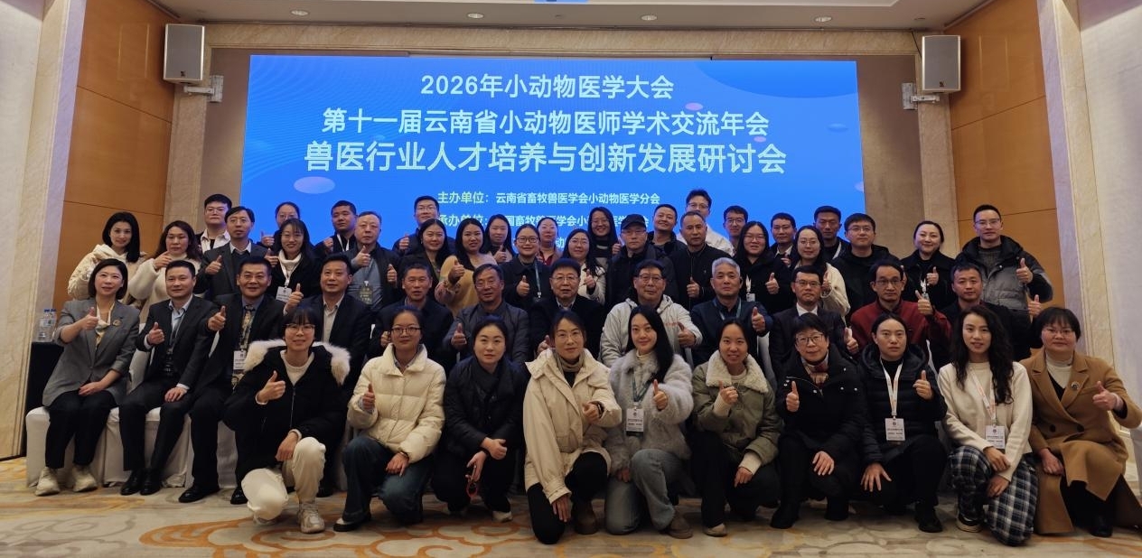 通知中心2026年1月13日,2026年小动物医学大会暨第十一届云南省小动物医师学术交流年会在昆明召开。做为本次大会的承办院校,学院党总支书记保志鹏、院长钱林东、副院长陈红艳携胡媛媛、张菊仙、谢琳娟专业教师团队一行六人参会,与省内外行业专家共同探讨兽医行业人才培养与创新发展路径。