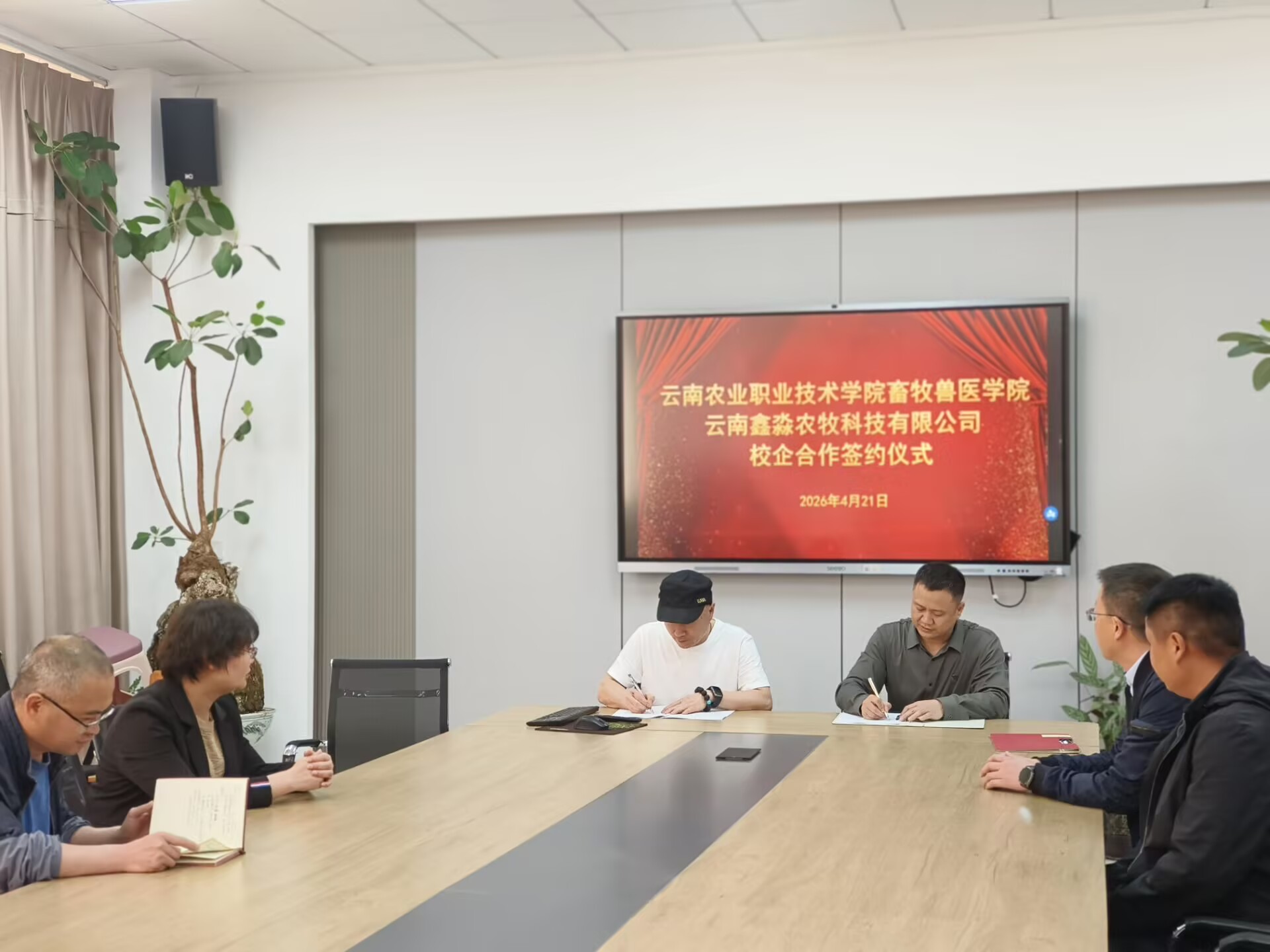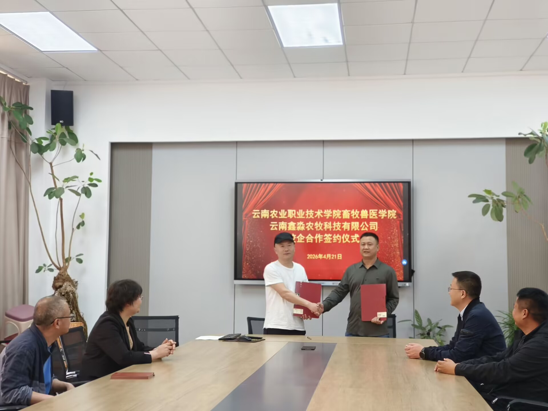 产教融合4 月 21 日,我校畜牧兽医学院与云南鑫淼农牧科技有限公司校企合作签约仪式在学校会议室隆重举行。校企双方代表齐聚一堂,围绕人才培养创新、产业需求对接、科研资源共享等议题展开深度交流,正式敲定系列合作举措,为应用型农牧人才培养开辟新路径。