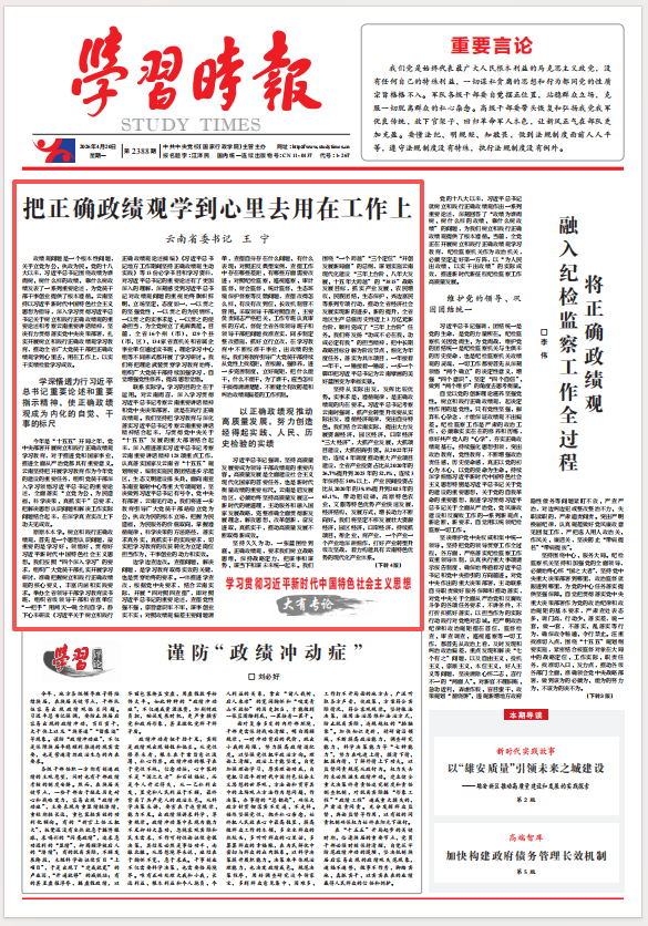 《学习时报》刊发云南省委书记王宁署名文章:把正确政绩观学到心里去用在工作上